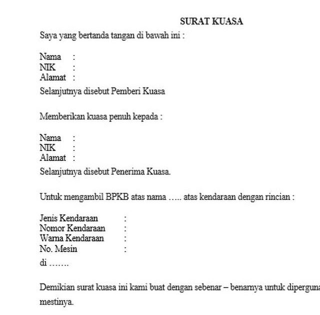 Contoh Surat Kuasa Ambil Bpkb Mobil - Kumpulan Contoh ... from contoh-surat.co Maybe you would like to learn more about one of these? Check spelling or type a new query. We did not find results for: